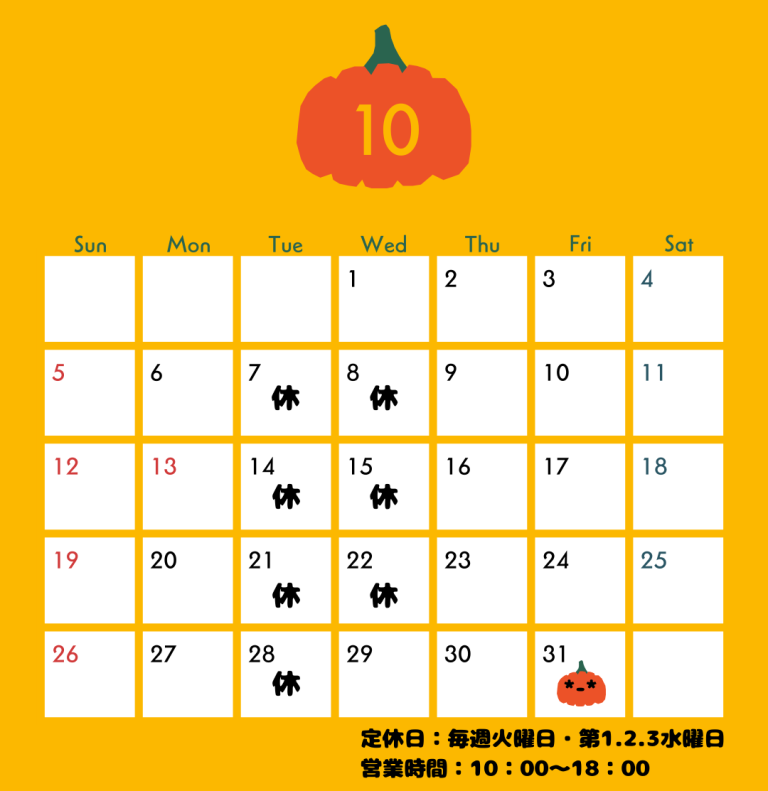 10月も皆様のご来店をスタッフ一同心よりお待ちしております。