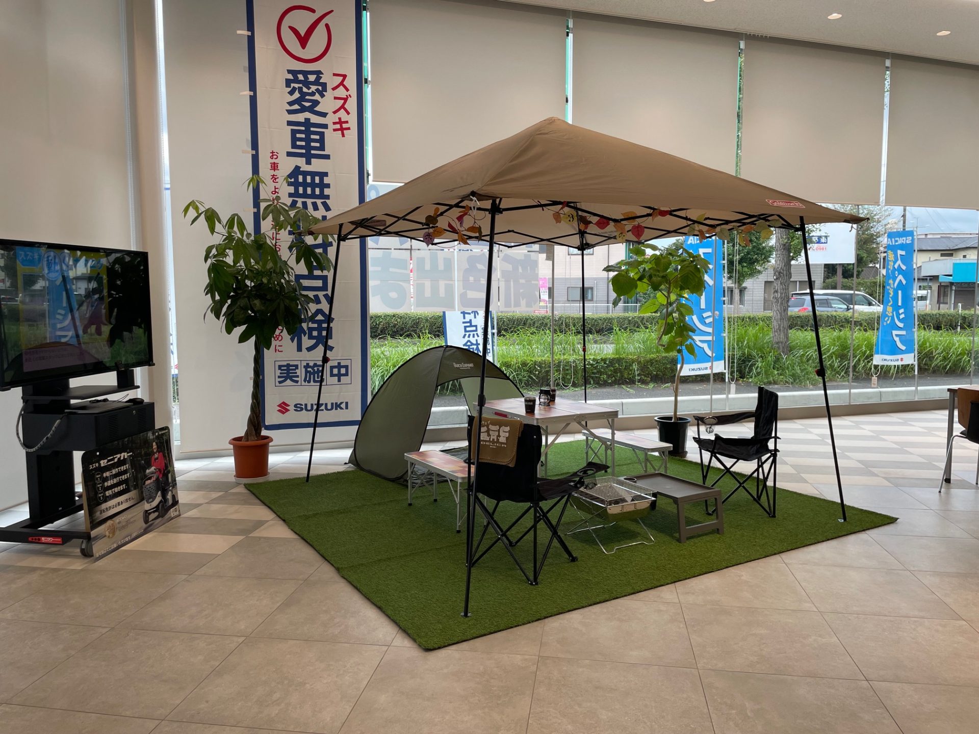 ショールーム入口をキャンプ仕様にしてみました![]()
