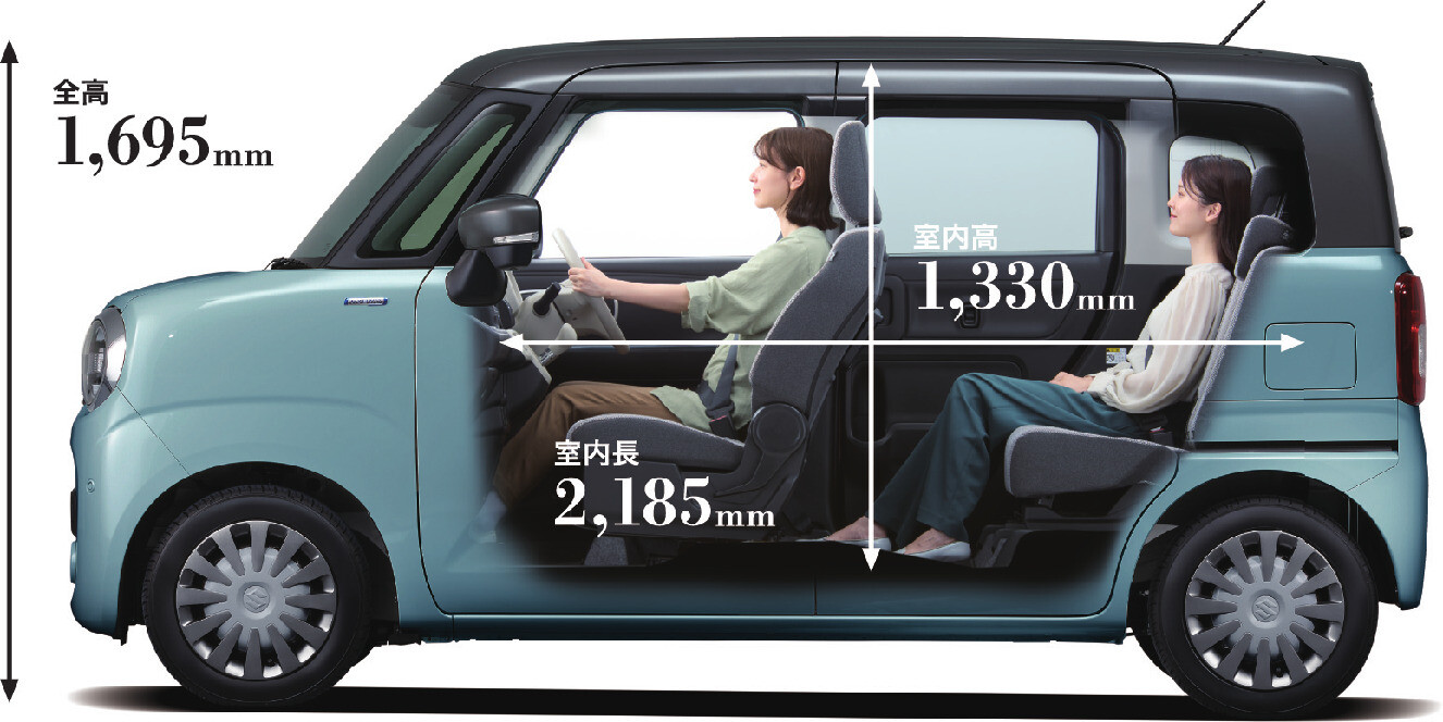 取り回しのよいサイズ感に、スライドドアの利便性をプラス。広々とした開放感のある室内空間