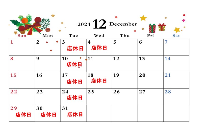 12月店休日のお知らせです