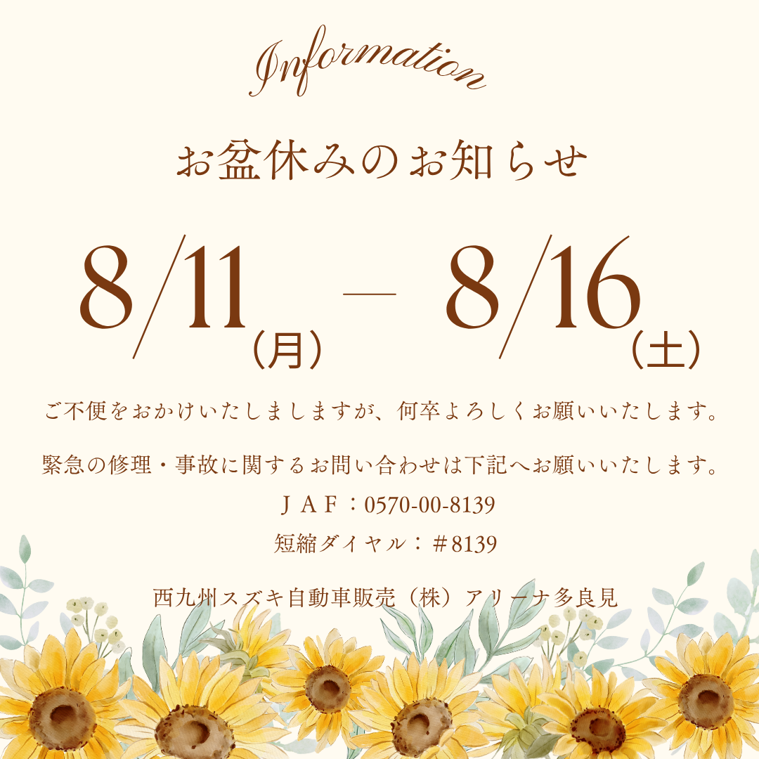 西九州スズキ自動車販売(株)アリーナ多良見からのお知らせ