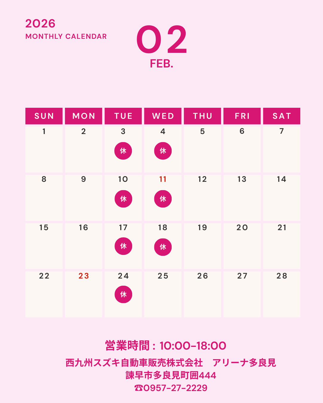 西九州スズキ自動車販売(株)アリーナ多良見からのお知らせ