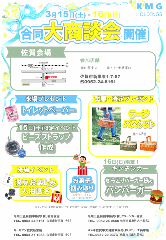 九州三菱佐賀支店・アリーナ兵庫店・クリーンカー佐賀・カーセブン佐賀新栄店