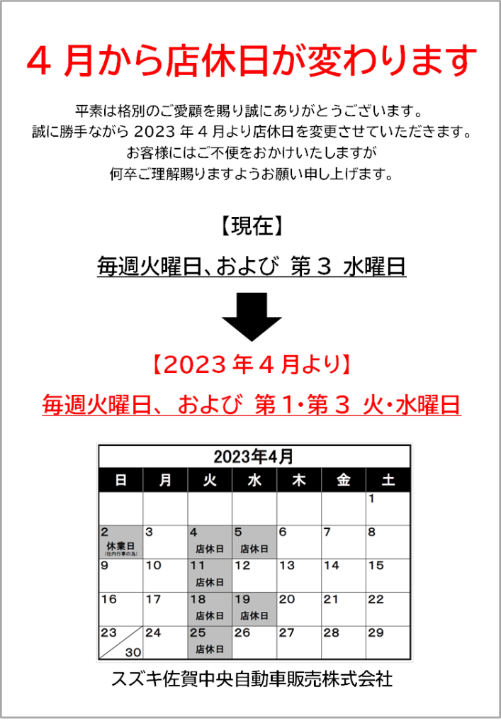 スズキ佐賀中央自動車販売(株)アリーナ兵庫からのお知らせ