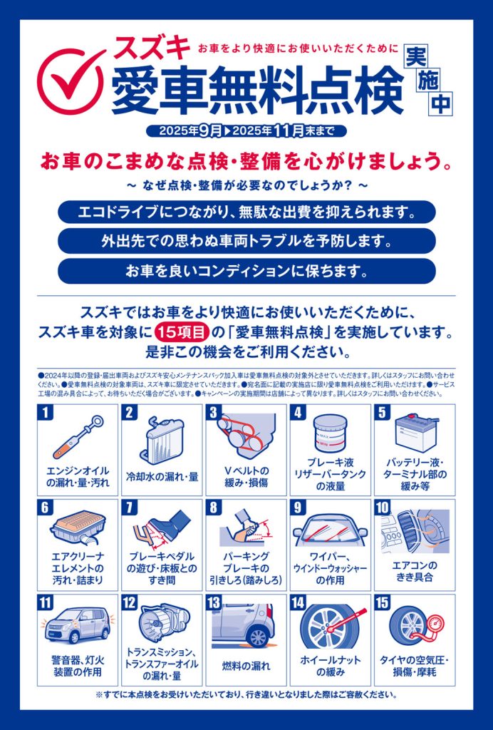 \スズキ無料点検実施中ですご入庫くださいっ/