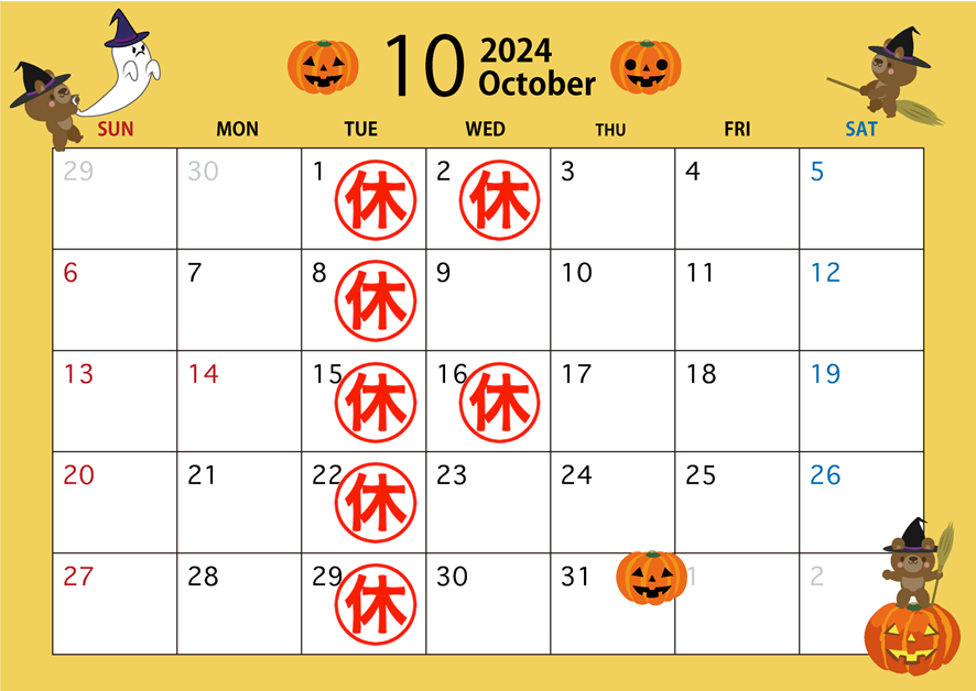 10月店休日のお知らせ🎃
