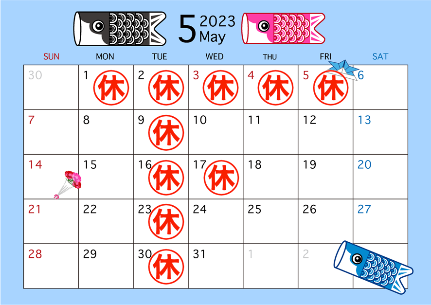 5月店休日のお知らせ🎏