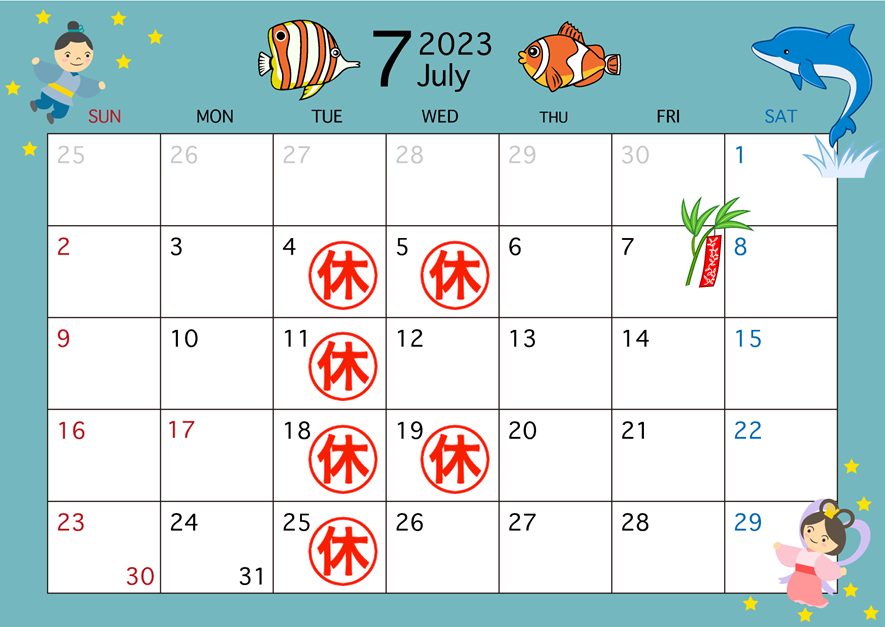 7月店休日のお知らせ🎋