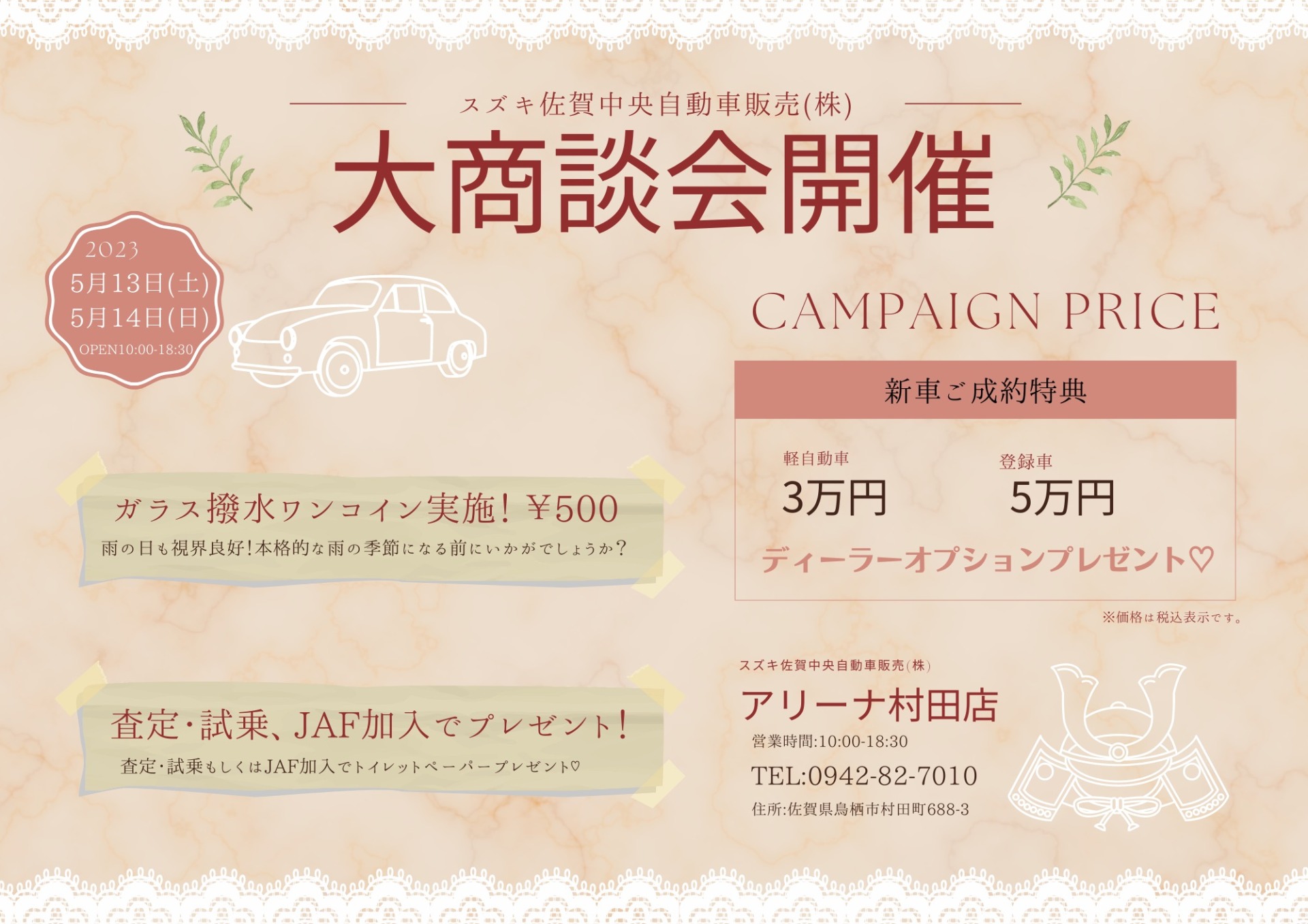 スズキ佐賀中央自動車販売(株)アリーナ村田からのお知らせ